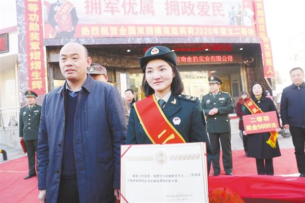 继2020年获得“全国拥政爱民模范个人”殊荣后,太康籍女兵赵莉莉再传荣立个人二等功喜报。1月8日,周口军分区副司令员薛振喜,市退役军人事务局局长陈宏、副局长孙光涛;太康县委常委、常务副县长张雪芳,县人武部部长于永前、政委郭立君,以及太康县退役军人事务局局长潘布道、民政局局长刘永新、城关回族镇镇长王艳等与部队领导陈随波、祝金龙一起为赵莉莉送立功喜报和“二等功臣之家”匾额,并举行庆祝仪式。