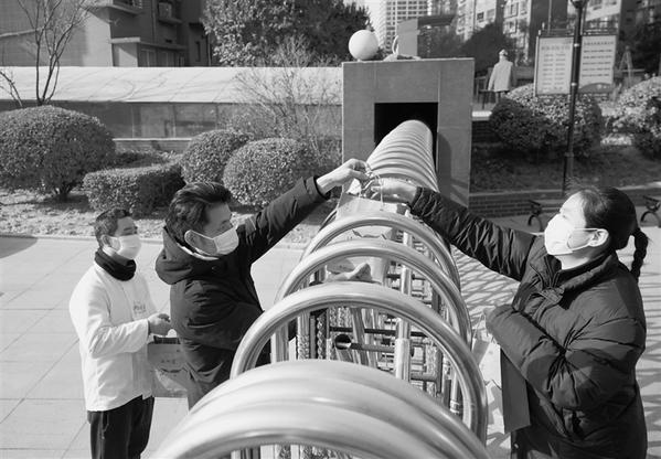 1月11日,汪新建(中)给社区执勤的工作人员送餐。汪新建和张琪琪夫妇生活在河北石家庄市玉兰苑小区,他们筹措资金,在小区门口开了一家餐厅,营业不到一个月,就遇到了疫情。现在,他们把员工安顿在宿舍,夫妻俩带着厨师和司机,为社区的工作人员免费提供盒饭,义务给邻居们跑腿买菜。但夫妻俩对未来充满期待,希望邻居们能团结起来,共渡难关,生意也能早点恢复正常运转。新华社记者 杨世尧 摄