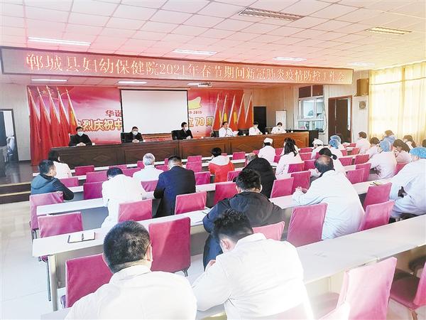 本报讯(记者 徐松 通讯员 王鸿飞)1月12日下午,郸城县第四医健集团县妇幼保健院召开冬春季新冠肺炎疫情防控工作会议,传达学习市县冬春季疫情防控工作会议精神,对医院疫情防控工作进行再强调再部署。医院全体领导班子、各科室主任、护士长参加会议。