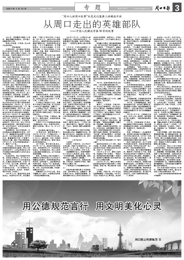 淮海战役结束后,各参战部队就地整训,中国人民解放军统一全军番号,在周口这片土地上成立了15军、16军、17军和18军。