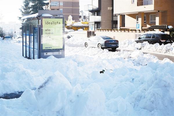 1月13日,一辆汽车从西班牙马德里市区的道路上驶过。截至当地时间12日,风暴“菲洛梅娜”已在西班牙造成5人死亡。目前,西班牙马德里市区部分道路积雪仍未清理,部分超市的生鲜类货品供应不足。新华社记者 孟鼎博 摄