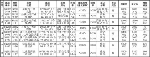 经沈丘县人民政府批准,沈丘县自然资源局决定以网上拍卖方式出让以下8(幅)地块的国有建设用地使用权,并指定沈丘县自然资源局组织实施。现将有关事项公告如下: