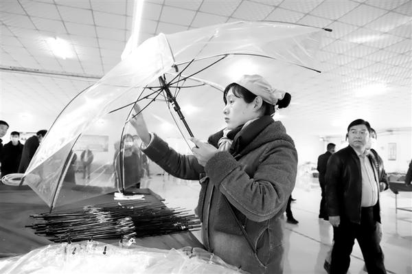 就这样,一个个村口的制伞车间把做好的初级工序产品送到乡镇的制伞分厂,全县数十家乡镇一级制伞分厂经过专业化再加工,把制作成半成品或几近完工的产品汇聚到县城的兄和家居、雨景伞业、皓泰商贸、雅姿制伞等制伞龙头企业总厂,由总厂合成、包装,直至贴上“Made In China”的标志、装上货柜,走向世界各地。