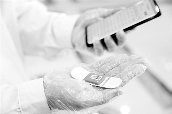 1月29日,在绥化市一处集中隔离点内,工作人员演示使用智能体温计。日前,因新冠肺炎疫情,绥化市需要集中隔离人员较多,该市采购了10200枚智能体温计,隔离人员将智能体温计里的“智能体温贴”贴在腋下,通过手机便可获得个人体温数据,大大减少隔离人员和工作人员交叉感染的风险。新华社发