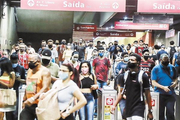 1月28日,市民戴口罩走在巴西圣保罗的一个地铁站内。