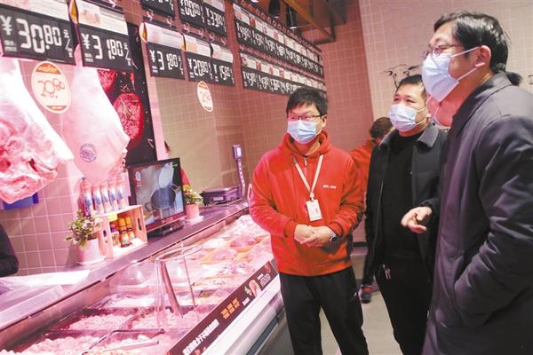 1月29日,扶沟县市场监管人员在县城一家超市抽查日常消费品价格。 连日来,为确保疫情防控期间市场秩序和商品价格稳定有序,扶沟县市场监管局派出16个价格监督检查组对一峰城市广场、润和超市等商超及农贸市场的猪肉、大葱、大白菜、萝卜、土豆等日常消费品定期进行价格监测,掌握最新市场价格动态,及时发现价格异常波动或倾向性、苗头性问题,采取得力措施处置化解,切实维护平稳有序的市场价格秩序。 记者 金月全 摄