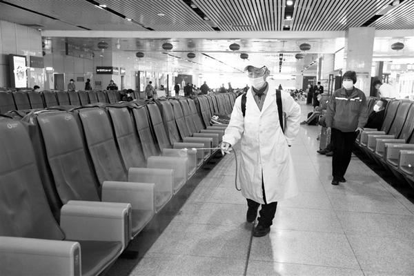 2月1日,济南火车站的工作人员在对候车大厅公共设施进行消杀作业。 自春运开启以来,济南火车站不见往年“摩肩接踵”的繁忙景象,虽然旅客人数减少,但疫情防控工作力度却始终不减,专人定时对候车区域、检票闸机、公共设施进行全方位消杀,确保旅客安全。 铁路部门数据显示,自2021年春运首日至1月31日,济南火车站共发送旅客近5万人次,旅客人数较去年同期减少八成。 新华社发