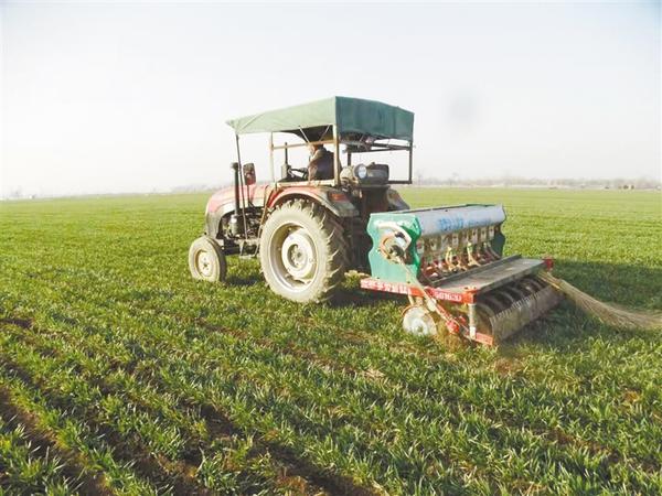 2月2日,在沈丘县周营镇孟寨村一处万亩优质小麦高产示范基地,种田大户忙着驾驶大型农用机械追施化肥。随着气温逐渐回升,小麦将进入返青、拔节期,这也是小麦产量形成的关键时期。为切实抓好小麦田间管理,该县积极引导农民抢抓农时,力争今年夏粮再获丰产丰收。记者 韦伟 摄