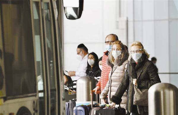 2月1日,旅客佩戴口罩在美国洛杉矶国际机场等待乘车。美国疾病控制与预防中心于1月29日下令,为防止新冠病毒传播,全国范围内公交系统乘客和工作人员必须戴口罩。新华社发