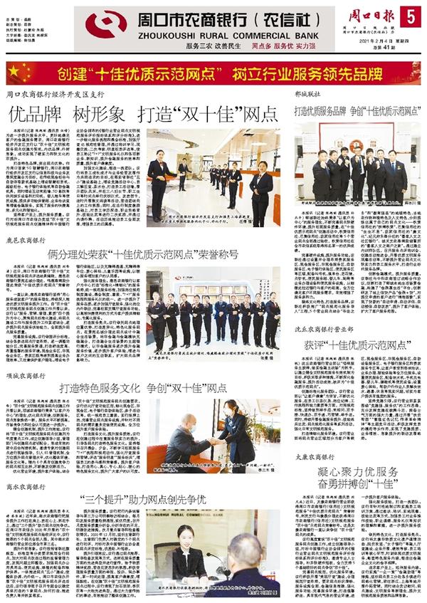 本报讯(记者 张艳丽 通讯员 张志华) “双十佳”文明规范服务网点创建工作开展以来,项城农商银行秉承“以客户为中心”的理念,优化网点环境,创新服务,网点形象焕然一新,服务水平不断提高,市场竞争力和社会认可度进一步提升。