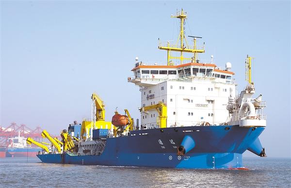2月6日,一艘施工船在唐山港京唐港区25万吨级航道工程海域进行疏浚作业(无人机照片)。近日,国家交通运输部重点支持项目——唐山港京唐港区25万吨级航道工程采用多艘大型专业化疏浚船舶同时作业的方式加紧对航道进行疏浚施工。据介绍,该项目于2018年5月开工建设,航道全长31.7公里,航道通航宽度270米,项目建成后京唐港区可实现20万吨级散货船全天候进出港,25万吨级散货船乘潮进出港。新华社发