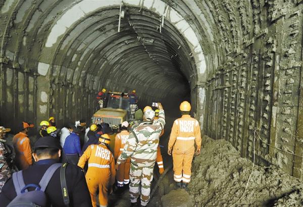 2月8日,在印度北阿肯德邦杰莫利地区,救援人员在被洪水冲毁的水电站附近开展救援。