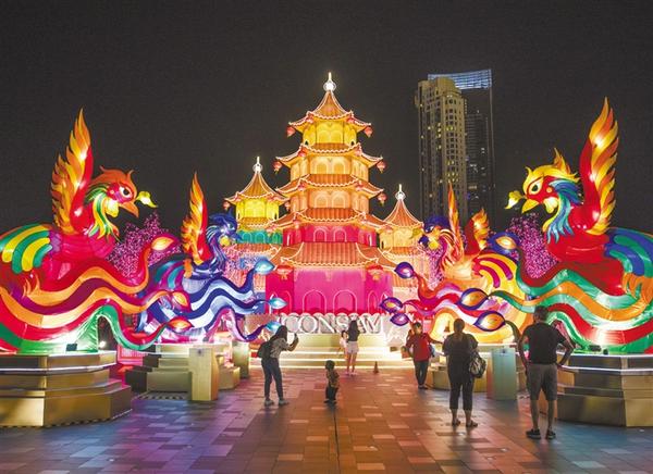 2月7日,顾客在泰国曼谷暹罗天地商场参观花灯。
