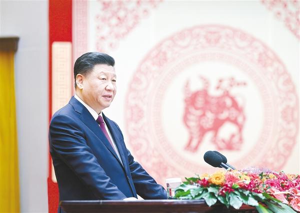 新华社北京2月10日电 中共中央、国务院10日上午在人民大会堂举行2021年春节团拜会。中共中央总书记、国家主席、中央军委主席习近平发表讲话,代表党中央、国务院,向全国各族人民,向香港特别行政区同胞、澳门特别行政区同胞、台湾同胞和海外侨胞拜年。