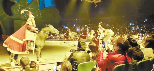 高超的马戏和杂技表演(如图)更是园区的一大亮点。可容纳3000名游客的森林大剧院,场场座无虚席。剧场有三大特色项目:大飞轮、空中飞人和马术。其中的大飞轮,在2005年获得第十届中国吴桥国际杂技艺术节特别奖,马术于2010年创造30秒上下马16次的吉尼斯世界纪录,空中飞人获得河南省第三届杂技“百戏奖”暨河南省第八届杂技大赛金奖。“演员蒙着双眼在高空飞轮上行走,场面太震撼了!”市民于小姐说,杂技演出在现场看和电视里看确实不一样。更难得的是,这是我们在家门口欣赏到的顶级杂技表演。