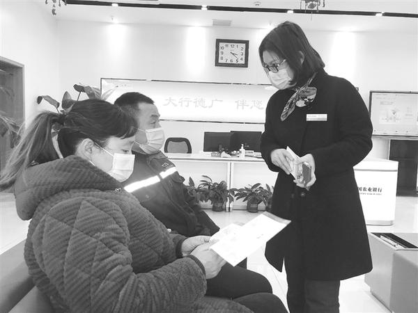 图一:农行周口分行切实履行社会责任,提升公众防赌反诈意识,利用春节人流高峰,在网点集中开展防赌反诈宣传。图为2月20日,该行营业部大堂工作人员向客户宣传反诈骗相关知识。