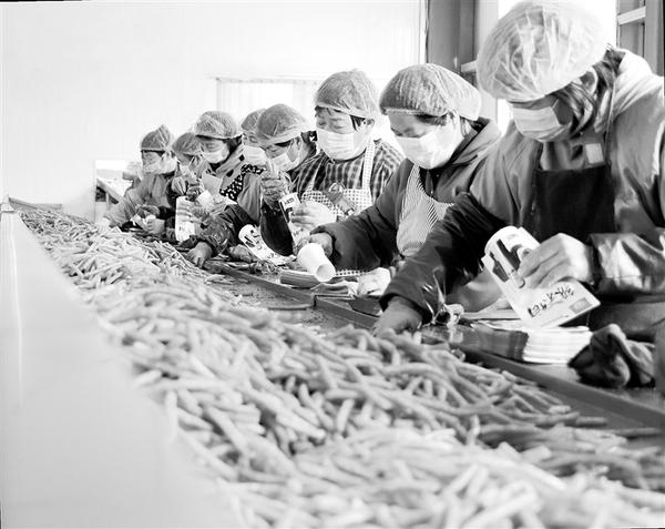 2月24日,扶沟县崔桥镇仁和村伟峰食品厂的员工在进行食品装袋。该厂把工厂建在家门口,吸纳32名村民就业,月平均工资在2800元以上。扶沟县49个扶贫车间全部建在村庄中,1000多名群众实现就近就业。