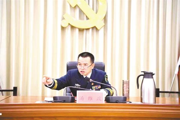 汤维政围绕打造备战打仗型军分区“周口品牌”作了讲话,他强调,要不断增强危机意识、责任意识、争先意识,按照一流标准,瞄准一流目标,坚定使命担当;要叫响“一切为打仗、敢于打胜仗”的口号,紧紧围绕“仗怎么打、兵怎么练”,时时处处以战斗力这一标准衡量各项工作,及时解决问题、纠偏正向;要以军分区党委工作报告中提出的“七大会战”“四个集训”为主要抓手,紧贴实战实训,强化任务牵引,不断夯实国防动员基础,持续提升备战打赢能力。