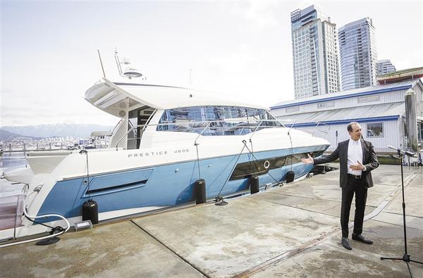 2月24日,在加拿大温哥华,组织者介绍一款2021温哥华国际船展的参展游艇。当日,2021温哥华国际船展开幕。受新冠疫情影响,本届船展改为线上举行。新华社发