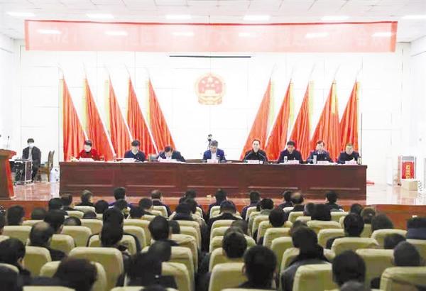 港区党委书记孙鹏代表港区党委、港区管委会正式向广大党员干部群众下达“奋力推动现代化生态新港城建设精彩开局”的动员令,要求港区各级各单位从现在起,立足新起点、凝聚新力量、开创新局面,以优异的成绩迎接中国共产党成立100周年。港区管委会主任程若光作经济工作报告,港区领导杜广贤、张东立、李翔、刘学庆、李素芹、康群泉出席会议。