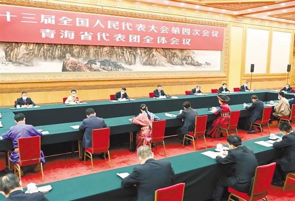 在认真听取代表发言后,习近平作了讲话。习近平充分肯定青海一年来工作和“十三五”时期发展,希望青海的同志全面贯彻落实党中央决策部署,完整、准确、全面贯彻新发展理念,坚持以人民为中心,坚持稳中求进工作总基调,持续深化改革开放,统筹发展和安全,弘扬光荣传统和奋斗精神,把坚持生态优先、推动高质量发展、创造高品质生活部署落到实处,在推动青藏高原生态保护和可持续发展上不断取得新成就,书写新时代青海新篇章。