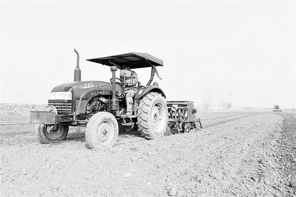 3月10日,天津市北辰区双口镇后丁庄村农民操作农机播种春小麦。近期,随着气温稳步回升,天津市各涉农区已全面启动春耕备耕生产工作。新华社发