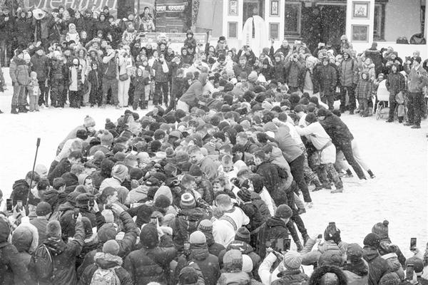 3月13日,在俄罗斯首都莫斯科,人们参加搏击活动庆祝谢肉节。
