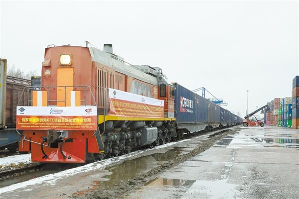 3月15日,由中国成都首发至俄罗斯圣彼得堡市的中欧班列抵达俄罗斯圣彼得堡舒沙雷火车站。由中国成都首发至俄罗斯圣彼得堡市的中欧班列15日抵达圣彼得堡舒沙雷火车站。此次抵达的中欧班列运载了50个集装箱,货物总重量677吨。新华社发