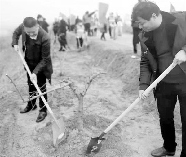 图三:3月12日是一年一度的植树节,当天上午,农行西华支行组织党员志愿者,来到黄桥乡颍河堤岸开展义务植树活动,以实际行动为“生态西华”建设再添新绿。图为该行党员志愿者正在植树。