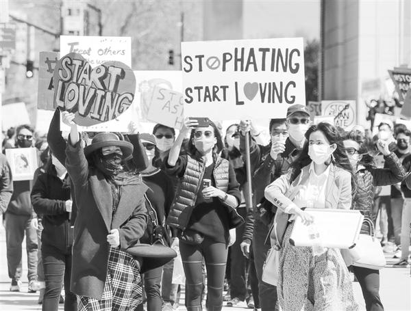 美国亚特兰大地区16日发生3起枪击案,造成包括6名亚裔女性在内的8人死亡。美国加州旧金山湾区民众连日来举行多场集会和游行,抗议美国不断发生的针对亚裔的歧视行为和仇恨犯罪。新华社发