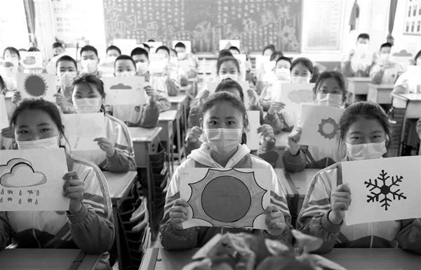3月23日,河北省邢台市第七中学学生展示气象知识绘画。