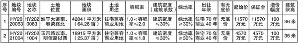 备注:(1)具体建设方案须报规划部门批准后实施,土地出让合同签订后,12个月内必须开工建设,工期30个月,土地成交价款需在土地出让合同签订后60日内交清,交地时间6个月内。(2)根据淮政[2019]45号文件精神,土地竞得人需在淮阳区注册新公司或设立子公司。(3)土地竞买保证金必须以竞买申请人(单位)自身的名义交纳,竞买申请人(单位)与交款人(单位)名称不一致的,无法确认其竞买资格,交纳款项无效。(4)HY2020063宗地需配建配套3班幼儿园及建筑面积不小于200平方米托儿所和老年人日间照料中心。配套幼儿园由开发建设单位负责建设,建成后无偿移交政府;HY2021004宗地有一编号为1626PG0122的皂荚古树,树龄达160年,属二级古树,具有重要历史和人文价值,依据《城市古树名木保护管理办法》第十一条、第十二条、第十三条、第十四条规定,应予以原地保护,严禁距树冠投影5米的范围内堆放物料、控坑取土、兴建临时设施建筑、倾倒有害污水、污染垃圾、动用明火或排放烟气。(5)具体以规划部门出具的规划指标为准,详见规划设计条件或批复文件。