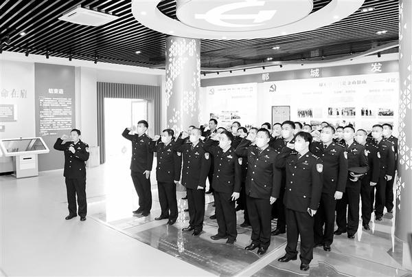 为增强教育培训的吸引力感染力,进一步提升广大党员民警的党性修养,牢固树立“四个意识”,坚定“四个自信”,做到“两个维护”,近日,郸城县公安局组织党员干部到该县党员政治生活馆,开展党史学习教育,重温入党誓词,锤炼党性意志,砥砺初心使命。图为重温入党誓词现场。 记者 卢好亮 通讯员 孟令康 摄
