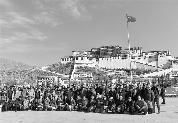 3月28日,群众在布达拉宫广场上合影留念,庆祝西藏百万农奴解放纪念日。当日,西藏各族各界群众聚集在拉萨布达拉宫广场,升国旗、唱国歌,庆祝西藏百万农奴解放纪念日。新华社发