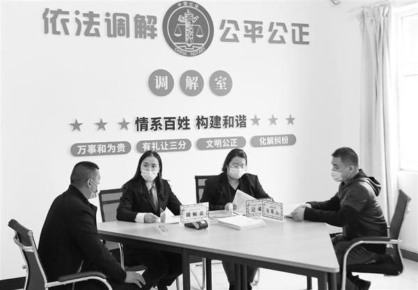 3月28日,新疆阿勒泰市人民法院司法辅助中心工作人员在调解矛盾纠纷。新疆阿勒泰地区阿勒泰市政法系统实施“零距离”服务措施以来,提供便民利民服务、化解各类矛盾纠纷,让广大群众“零距离”感受到政法服务的“速度”和“温度”。新华社记者 沙达提 摄