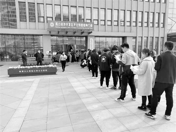 3月27和28日,周口经济开发区太昊路社区卫生服务中心下辖的万达社区卫生服务站和开元预防接种门诊,精心组织、有序实施,为18岁至59周岁的居民免费接种新冠疫苗1293剂。图为接种现场。
