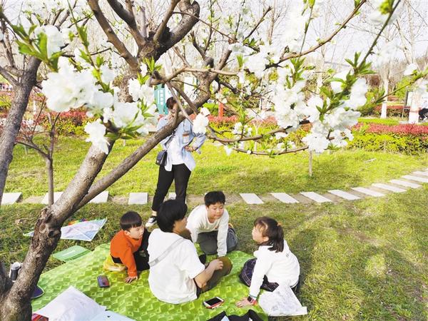 最美四月天、踏青正当时。清明节期间,周口公园、周口植物园里金黄的连翘、婀娜多姿的美人梅、鹅黄嫩绿的新柳、盛开的桃花,一片生机盎然。市民们纷纷走向户外,沐浴春光,拥抱大自然,享受假日时光。记者孙安平 摄