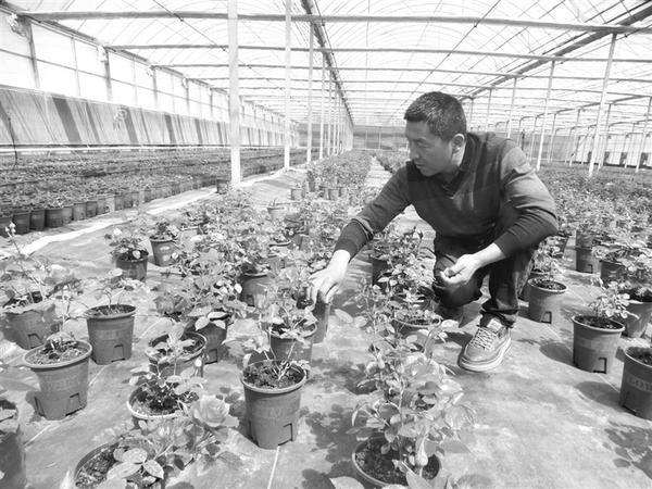 据介绍,今春首批订单盆景欧洲月季花卉被商家抢购一空,经济效益可观。谢辛凌 摄