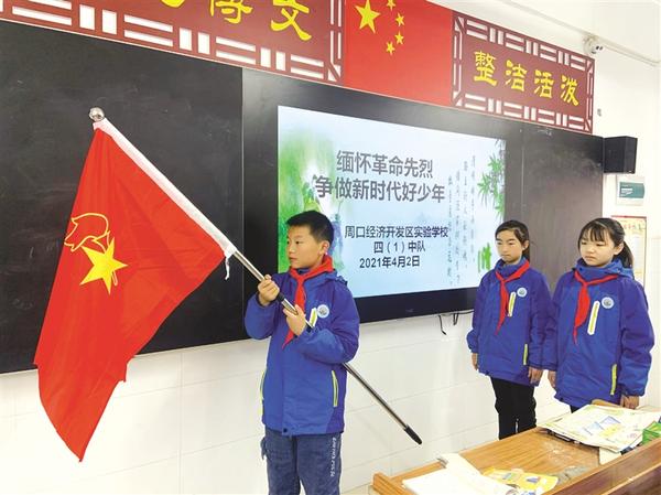 本报讯 (记者 王晨/文 通讯员 王君/图) 为更好缅怀革命先烈,传承红色基因,把开展党史教育同弘扬优秀传统文化结合起来,清明节期间,开发区开展线上、线下清明节主题教育活动。 开发区积极发动全体党员干部、职工群众通过手机参与中国文明网“缅怀英烈、铭记历史”网上祭英烈活动,扫码观看党的百年辉煌历程中革命先驱、英雄先烈的英勇事迹,通过献花、鞠躬等方式表达对先烈先贤的感恩敬仰,并写下寄语留言,缅怀先烈,致敬英雄。 开发区实验学校组织举行了“缅怀革命先烈,做新时代好少年”主题班会(如图),追忆烈士足迹,重温光辉历史。学生们通过演讲、手抄报、折纸、黑板报等形式向烈士表达最崇高的敬意。全体师生忆往思今,聆听爱国志士在祖国危难时不怕牺牲,以身报国的英雄事迹。他们纷纷表示,一定珍惜革命成果,感恩幸福生活,以革命先烈为榜样。 周口市公安局经济开发区分局举办第八期警营夜校,邀请曾三次参加对越自卫反击战的老兵马绍领为分局全体民警做英模事迹报告。马绍领声情并茂地讲述了三次对越作战亲身经历,回顾了当年与战友并肩作战、坚守阵地的战斗历程。全体民警向老英雄和他的战友致敬,警营内掀起以英模为榜样、学习英模热潮。 追昔抚今,饮水思源。英魂虽逝,精神犹存。据了解,开发区举办丰富多样的祭拜先烈活动,让大家深刻感受到了革命先烈的浩然正气,心灵再次受到洗礼、净化。大家纷纷表示,要将革命先烈无私奉献精神转化为攻坚克难的勇猛气势,主动担当作为,为开发区事业贡献自己的力量。