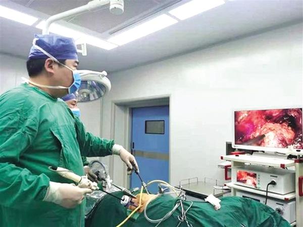 本报讯(记者 徐松 通讯员 张海鹰 文/图)近日,县中心医院泌尿外科在麻醉科、手术室密切配合下,综合运用多项新技术成功开展了腹腔镜下肾上腺嗜铬细胞瘤切除术(如图)。