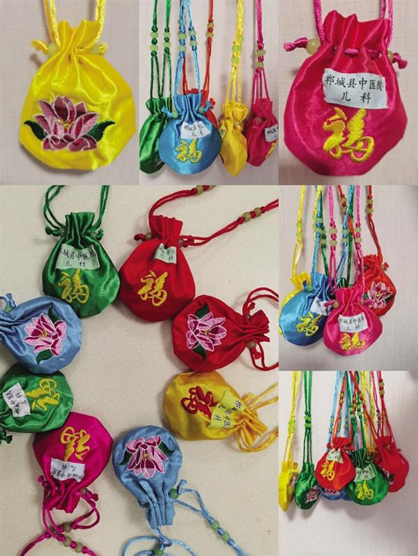 本报讯(记者 徐松 通讯员 张洋 文/图)春季气候转暖,昼夜温差大,易致人体抵抗力下降,从而诱发小儿感冒。县中医院儿科根据《本草纲目》中“闻香治病”的记载,为小儿制作了“锦囊妙计”,就是佩戴中药香囊(如图)。