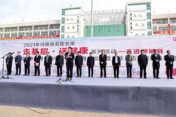 本报讯 (记者 徐松 通讯员 孙小明 王洪振 文/图) 4月18日上午,2021年河南省名医名家“走基层·送健康”系列活动走进郸城县暨在校青少年脊柱侧弯和强直性脊柱炎筛查义诊·志愿者服务行动启动仪式在第二实验中学举行。省卫健委副主任刘延军,《光明日报》河南记者站站长王胜昔,市人大常委会副主任、郸城县委书记罗文阁,副市长秦胜军,市卫健委主任金玉贞,县长李全林等出席启动仪式(如图)。