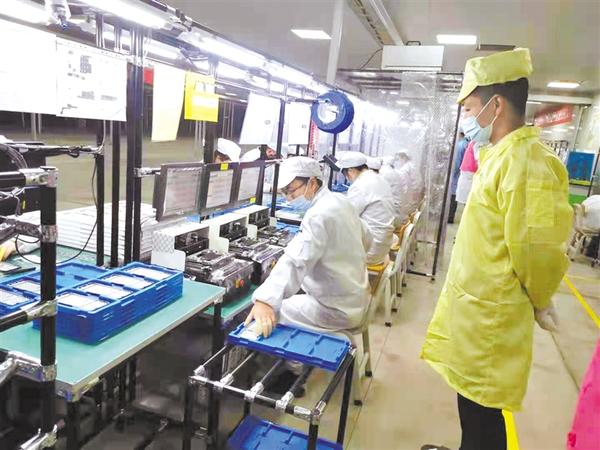 4月24日上午,富士康周口科技工业园一期项目投产仪式在川汇区举行,这标志着继华为后又一家智能制造领域的世界500强企业入驻周口,将有力提升我市在高端精密制造行业中的地位。富士康周口科技工业园项目是我市招商引资重点项目,定位为智能制造基地,主要研发生产华为手机、平板、PC及穿戴装置等关键零部件产品。项目总投资15亿元,分两期开发运营,全部建成后预计年产值达31亿元、安排就业人员3万人。图为车间一角。记者 韩志刚 摄