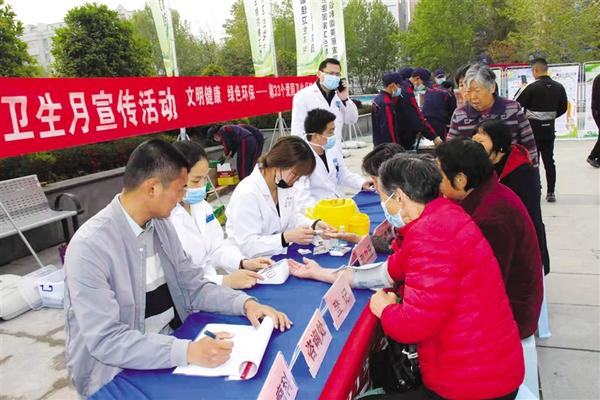 4月14日上午,区卫生健康委在五一文化广场组织开展“文明健康 绿色环保”爱国卫生月宣传活动。活动现场,医务人员设置咨询服务台,为群众免费测量血压、血糖,讲解健康知识,引导大家践行“讲文明、铸健康、守绿色、重环保”的生活方式,共同筑牢疫情防控社会“大防线”。记者 韩志刚 摄
