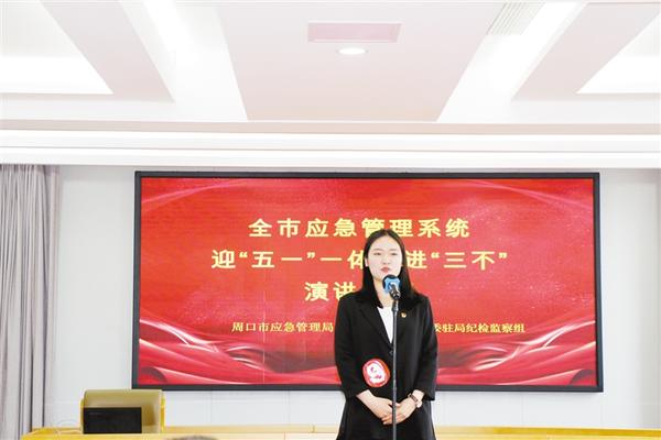 本报讯(记者 王凯 通讯员 朱玉柱 文/图) 4月28日上午,全市应急管理局系统“一体推进不敢腐不能腐不想腐,深化以案促改”主题演讲比赛进入到决赛阶段,11位来自我市应急管理系统的选手同台竞技,充分展示了应急人廉洁自律、干事创业的精神风貌。