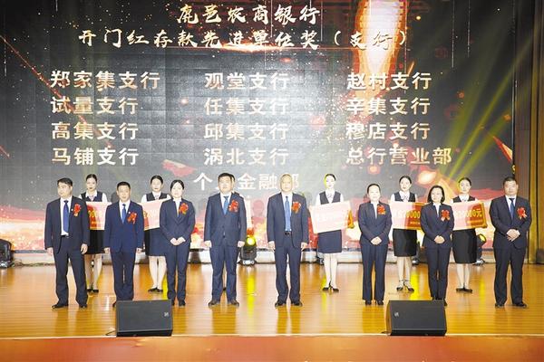 今年首季“开门红”工作启动后,鹿邑农商银行全体员工主动营销、积极走访、热情服务,用行动实现了精彩开局。截至3月末,该行存款净增25亿元,完成既定任务的167%,新增市场份额占比69.12%,对公存款增长在全省排名第一,存款、贷款、网络金融综合排名位居全省第三。图为该行表彰先进现场。朱丽芸 摄