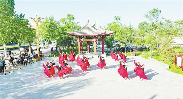 近年来,淮阳区紧抓“创卫”“创文”机遇,加大基础设施建设,城区市容市貌焕然一新。图为广大市民在环境优美的街头游园载歌载舞。记者 侯俊豫 通讯员 段相民 摄