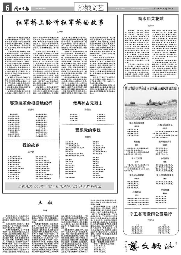 他淳朴的家庭情怀。二十年前春节前的一天,我回老家看望父亲,三叔听说后,主动到家里,跟我父亲说:“大哥,咱们村就我们亲几家,时间长了,辈分就不清楚,我想去老家续续家谱。”父亲同意了三叔的想法。春节过后,三叔就踏上了去开封市杞县邢口镇何寨村的路,通过一个月的努力续好了家谱。再后来,我们收到了厚厚的家谱,父亲很高兴,说三叔办了一件大事。每年的清明节前夕,三叔都第一个到老坟,为逝去的亲人添坟加土、送上纸钱。他常说:“只有用这种方式,来祭奠亲人。”家里大小事,三叔都会操心,与父亲一起打理,给晚辈留下效仿的经验。