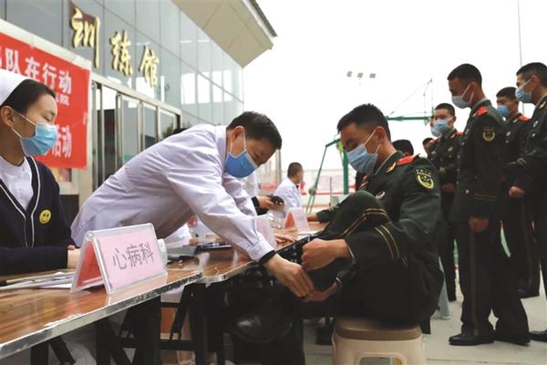 4月28日,县第二医健集团县中医院到武警中队为武警官兵开展学党史办实事义诊咨询活动。该院了解到官兵平时训练任务多,导致上下肢肌肉拉伤、关节损伤等问题普遍存在,为此专门安排骨科、疼痛康复科、心病科等科室医生为官兵答疑解惑,讲解保健知识。图为工作人员携带彩超、心电图等医疗设备为官兵检查身体。 记者 徐松 通讯员 张洋 摄