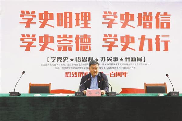 上午8时,党史学习教育课在学校操场上正式开讲,孙鹏面对端坐整齐的全校师生,通过讲故事的方式,从三个方面展开讲座。